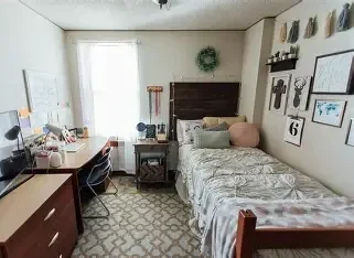 The less common dorm style is the suite-styled dorms. This form of style typically consists of four private-rooms, 2 shared bathrooms, as well as a large living space. A few of the dorms use this particular style but the most significant, are Murray and Talkington. A benefit of being housed in the dorm is the privacy, because you will have your own room. A downside of this dorm is the extra cleaning that is required, as you will not have a communal bathroom that gets cleaned daily.